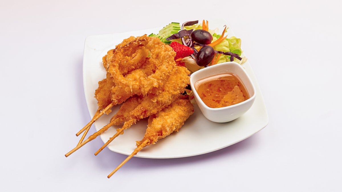3. Frityrstekt Scampi På Spyd