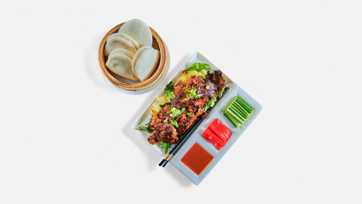 Serveres med pannekaker, grønnsaker og hjemmelaget hoisinsaus. Retten passer for 2 personer.