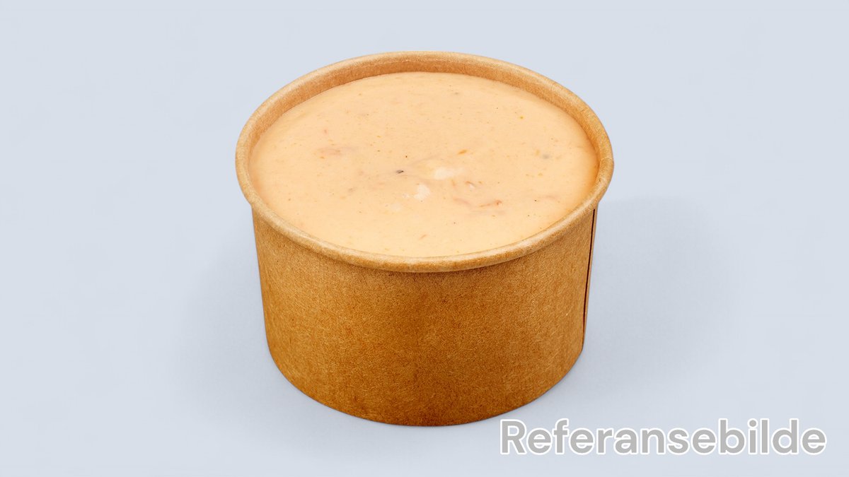 Tomatsaus, ost, biff, løk, champignon, tacosaus, jalapenos, tacokrydder