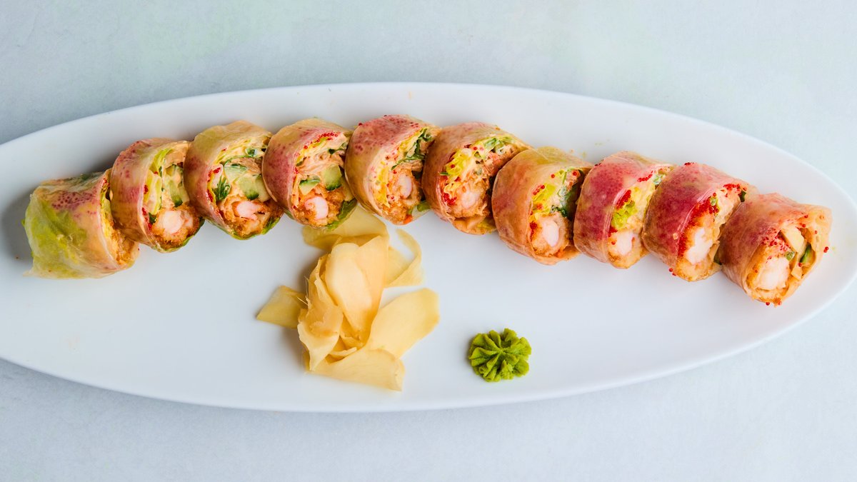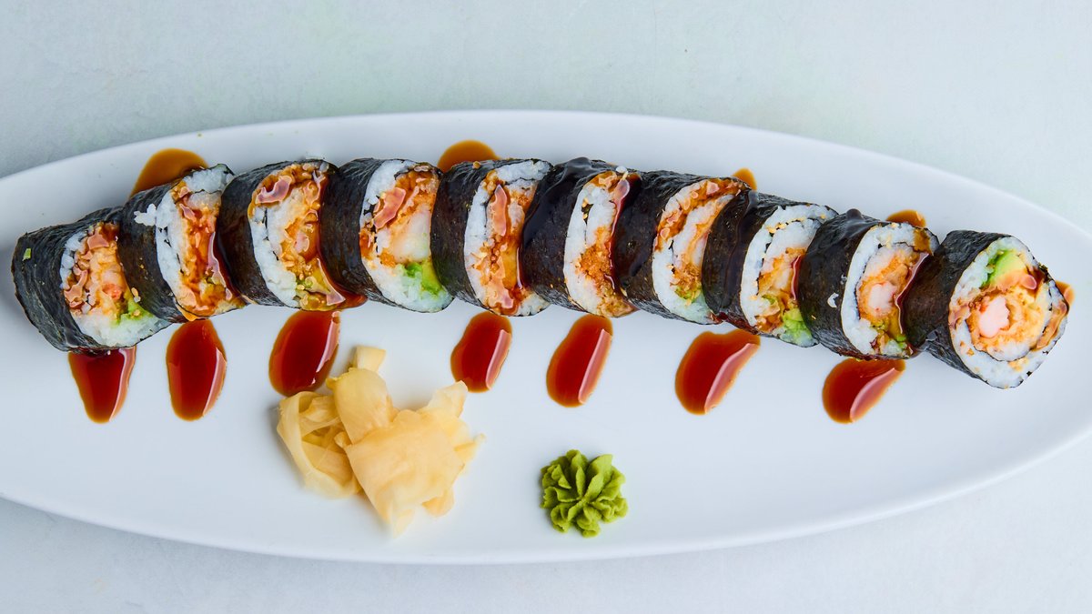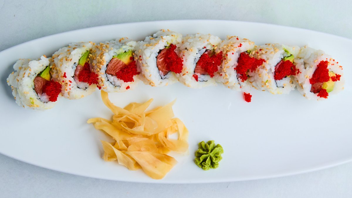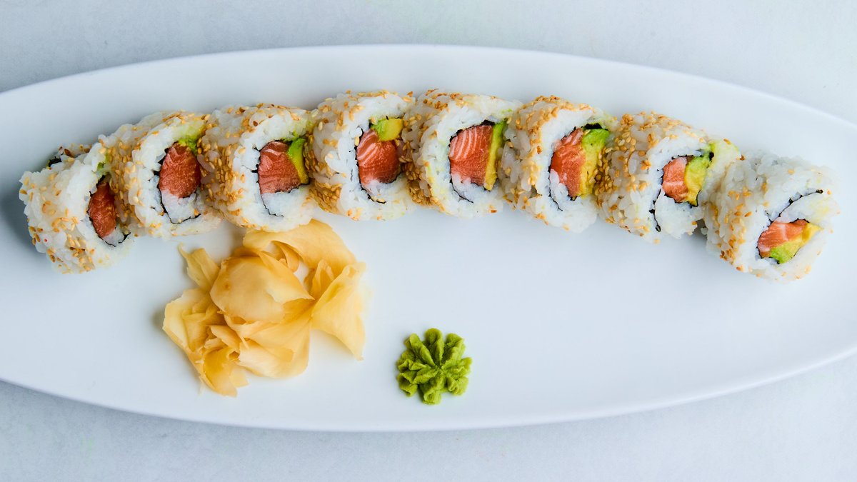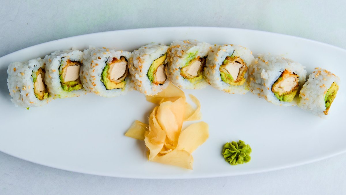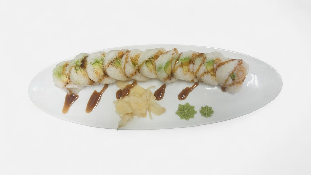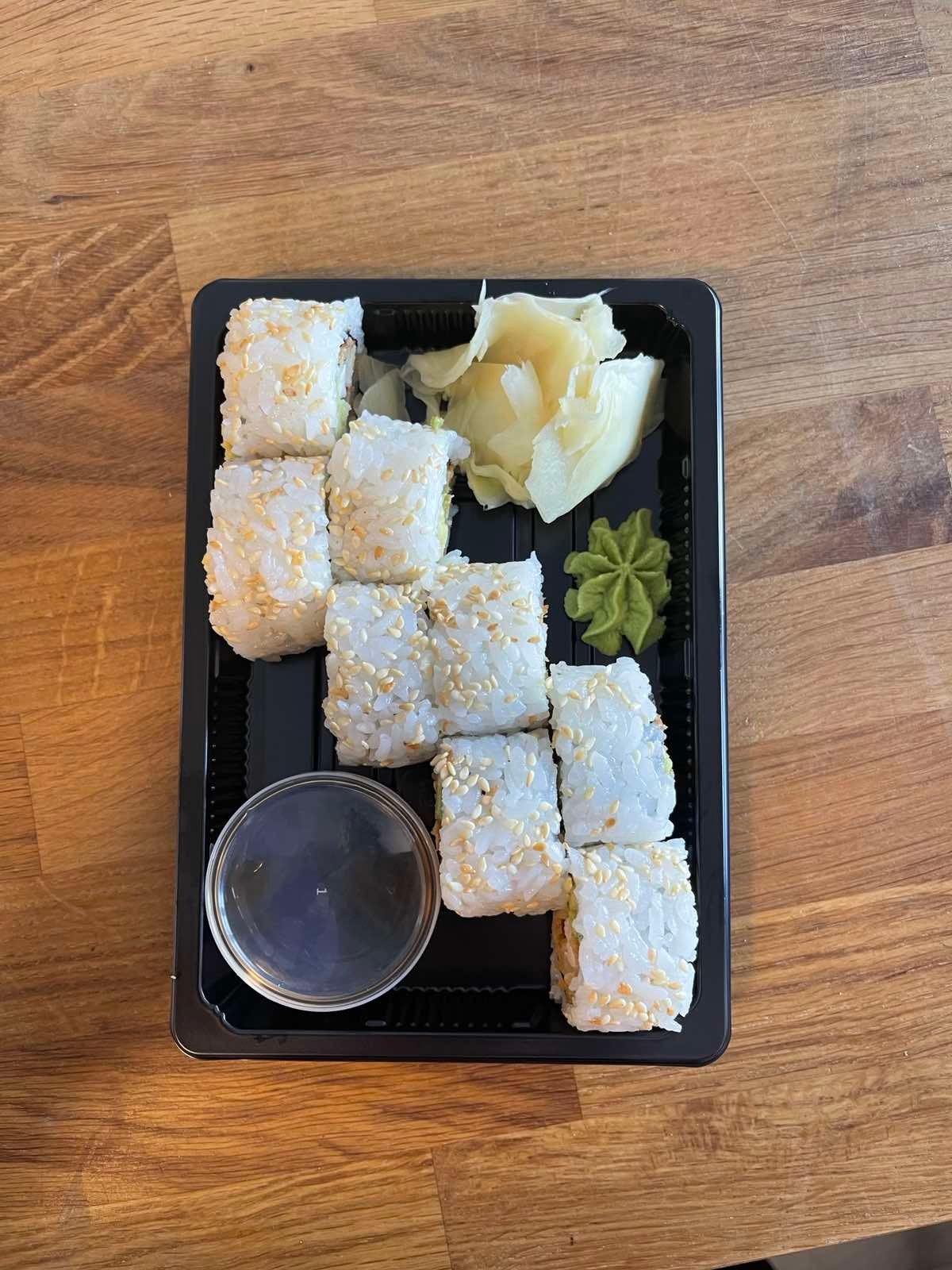 12 store biter med avokado, chili-majones, teriyakisaus, sesamfrø og ditt valg av protein.