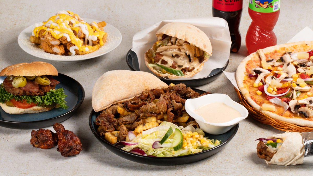 Deilig pizza, burger og kebab!