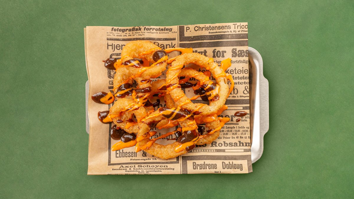 Serveres med burgerost. Serveres med Fries.