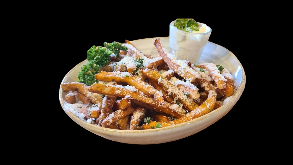 Fries med revet parmesan.