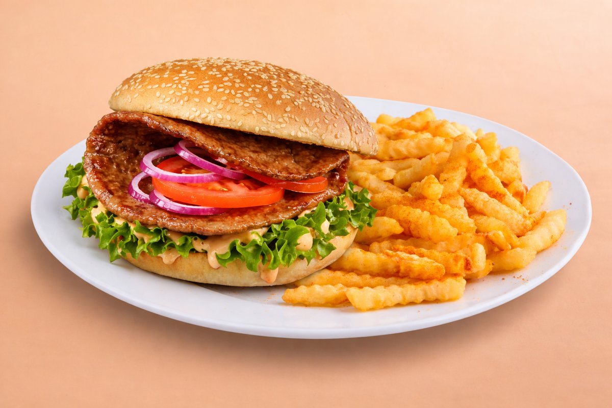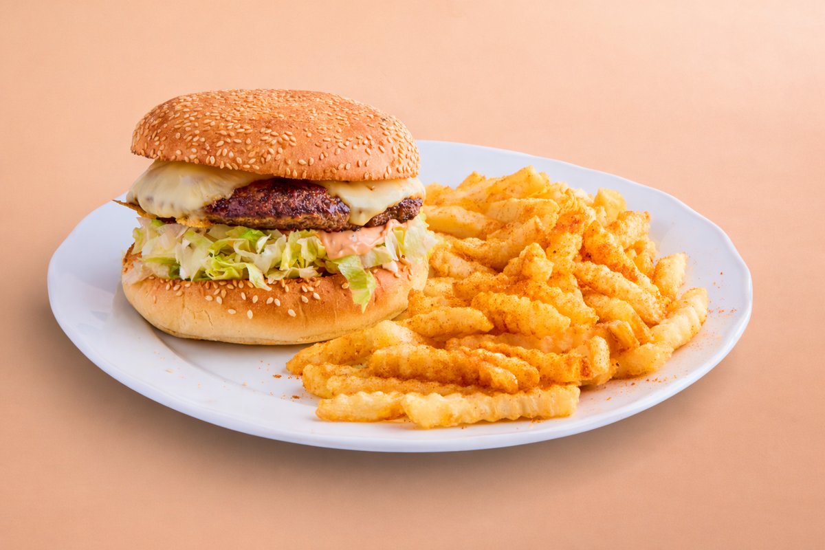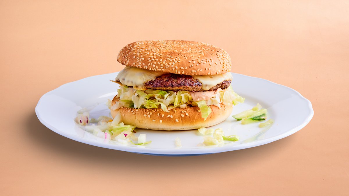Burger i et luftig brød, smeltet cheddar & bacon komplet med isbergsalat, hamburgerdressing, syltede agurker, delikat løk, dönerkjøtt. Serveres med Pommes Frites, løkringer, aioli & Jack Daniels Dip.