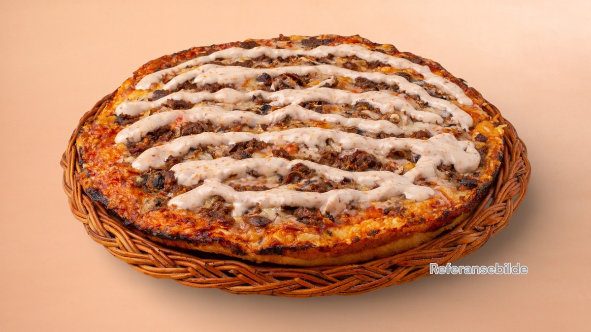 Ost, Tomatsaus, Biff, Kylling, Skinke, Kjøttdeig, Løk, Paprika.