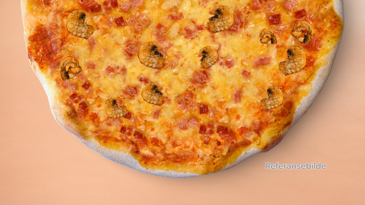 Ost, Tomatsaus, Bacon, Løk, Sjampinjong.