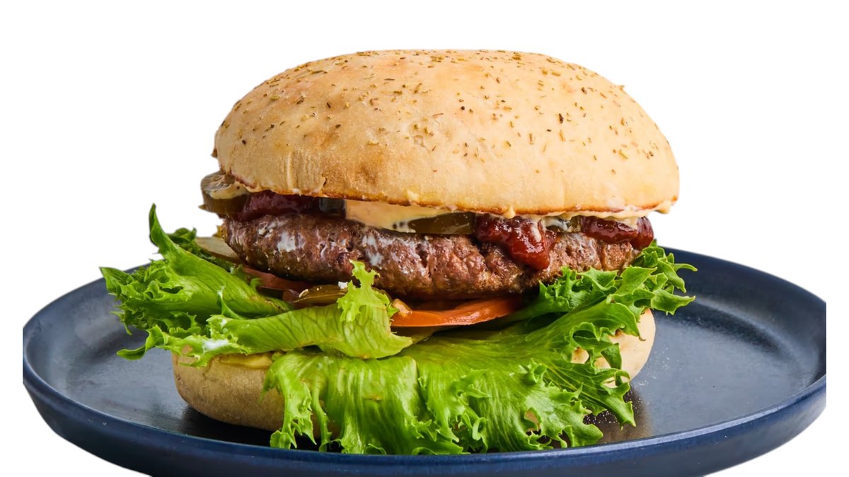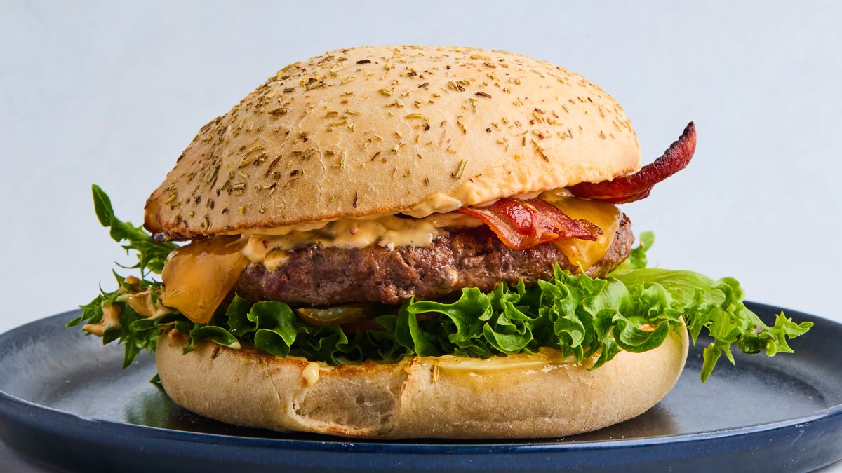 Vår baconburger serveres med egenprodusert hamburger-dressing og trøffelmajones. Du får denne burgeren med bacon, crispisalat, tomat og sylteagurk. Burger Boost anbefaler ekstra bacon som tilbehør. Med valgfri brus.