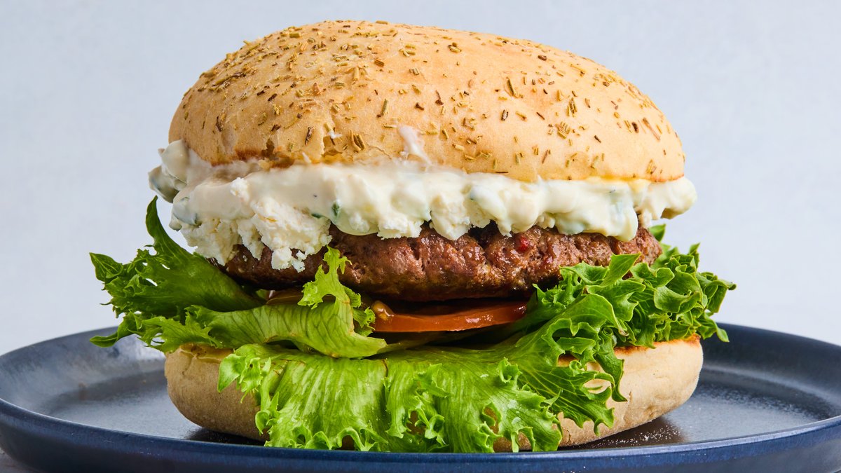 Blue cheese burgeren serveres med blåmuggost dressing og trøffelmajones. Du får denne burgeren med crispisalat, tomat og sylteagurk. Burger Boost anbefaler bacon og syltet rødløk.