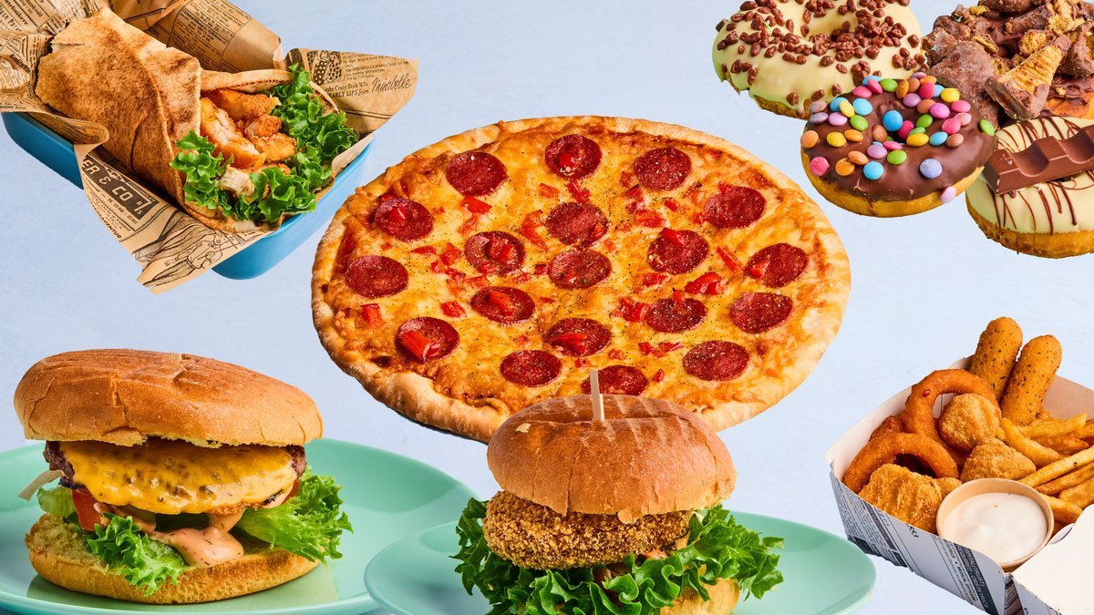 Herlig pizza eller cheeseburger med godt utvalg av drikke.