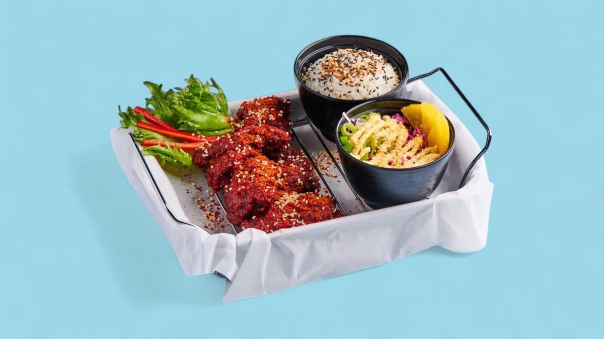 Hjemmelaget yangnyeom glaze som er søt, tangy og spicy med carolina reaper chili. Carolina reaper chilien har en gjennomsnittlig Scoville-grad (SHU) på 1.641.000, med noen individuelle chilier som måler imponerende 2.200.000 SHU. Dette er verdens sterkeste chili. Serveres med syltet reddik og asiatisk coleslaw. Velg mellom ris eller steak fries.