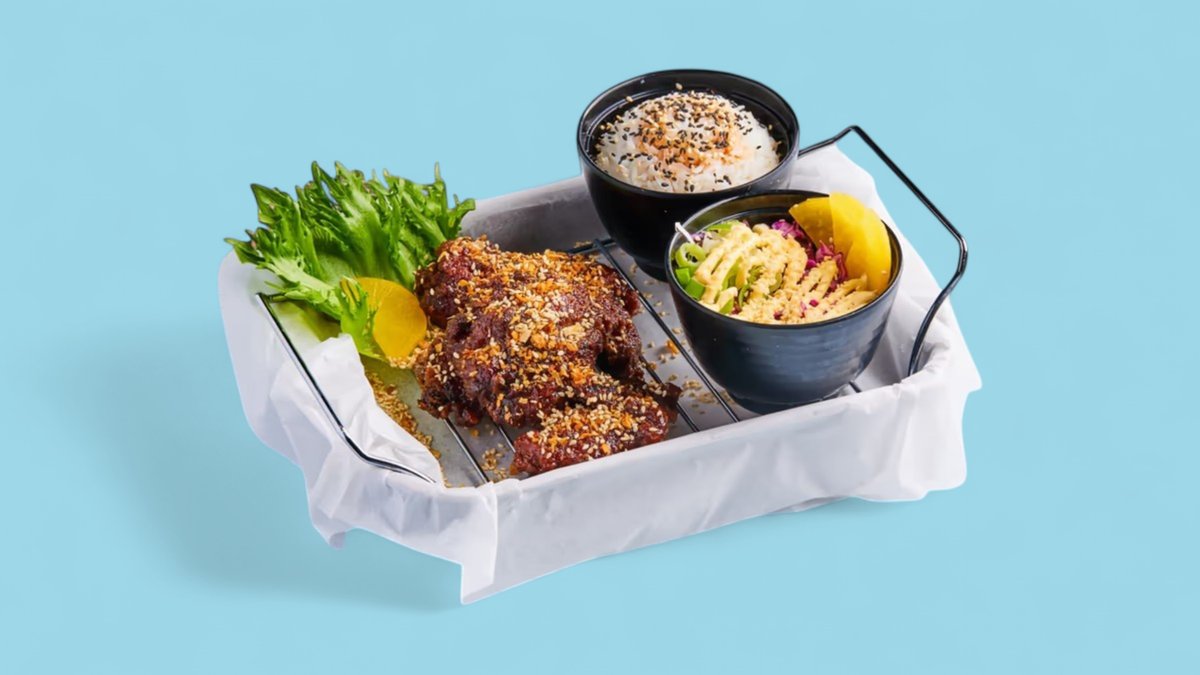 Hjemmelaget honey soy glaze med smak av honning, smør og noter av sitrusfrukter. Tangy og frisk. Serveres med syltet reddik og asiatisk coleslaw. Velg mellom ris eller steak fries.