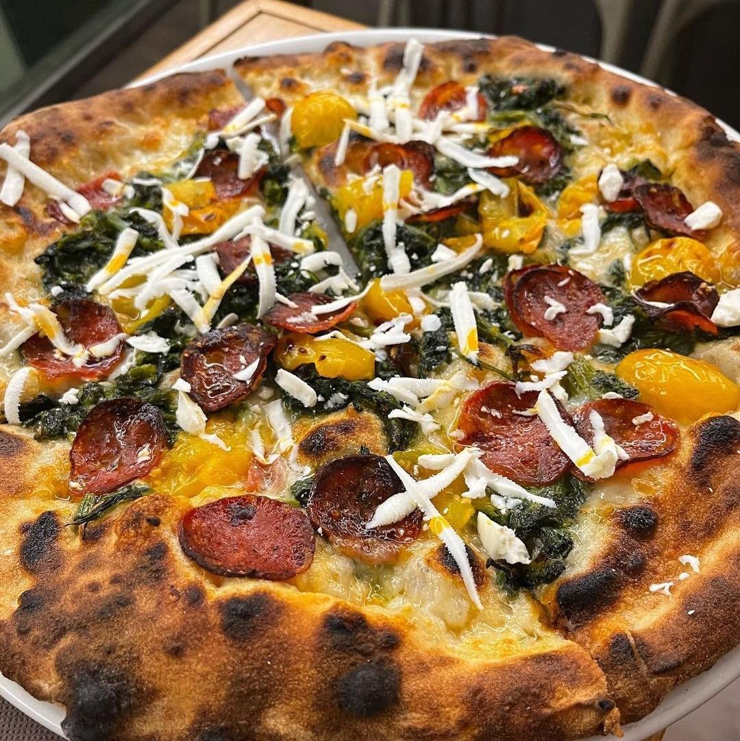 Vi er inspirert av de klassiske pizzeriaene i Italia og spesielt i Napoli og tar så mye som mulig, men samtidig utvikler vi våre egne varianter av denne anerkjente retten. Vi bruker San Marzano-tomater til å lage sausen. Tomatene anses for å være de beste i verden, med en veldig karakteristisk smak. Intensiv og søt. Mel av typen tipo 00, vann og gjær. Høres enkelt ut, men som med all matlaging er det alltid et avgjørende kapittel som resulterer i et produkt med det ekstra Fermenteringsteknikken og utformingen av ovnen er avgjørende sammen med typen mel til pizzaen.