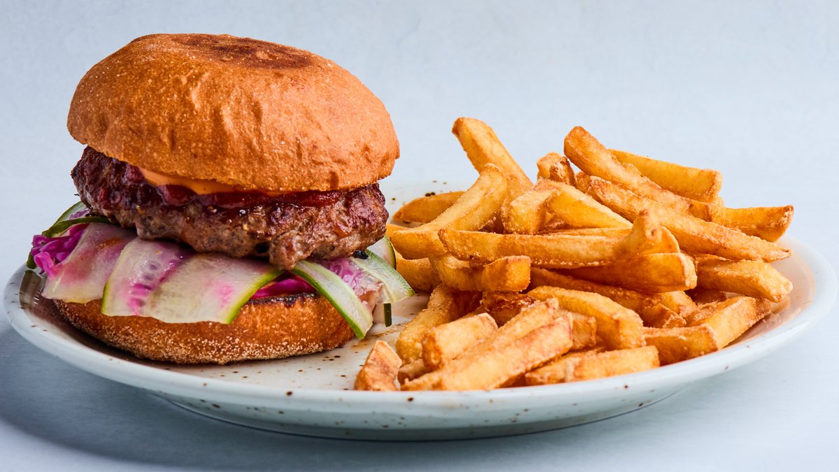 Alle burgerne våre serveres i nyristet potetbrød. Burgerne serveres med pommes frites.