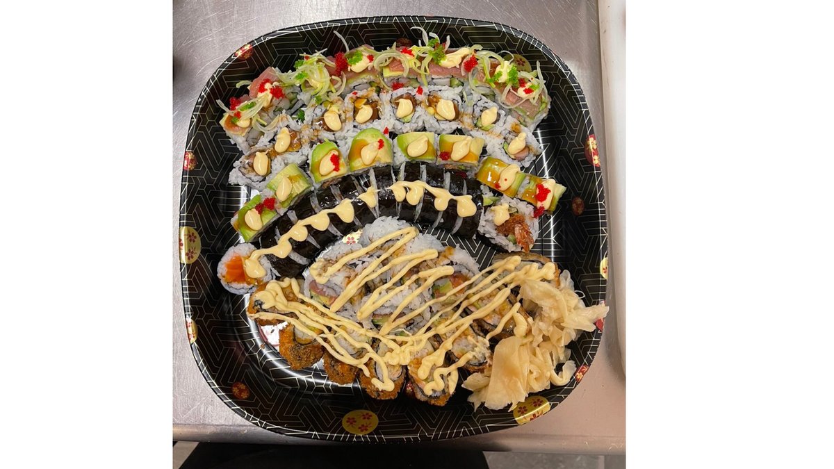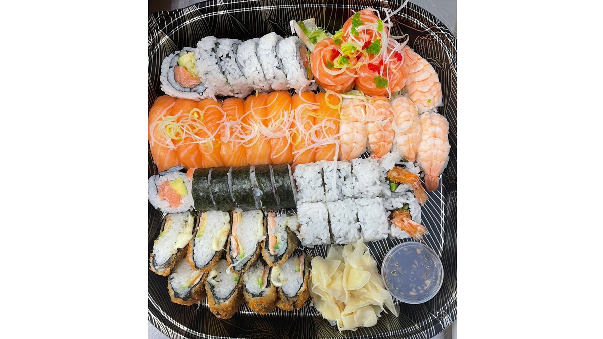 13 Nigiri, 6 Luna maki, 8 Tempura maki, 8 laks-ost maki, 6 Tempura cheese maki og 9 sashimi.