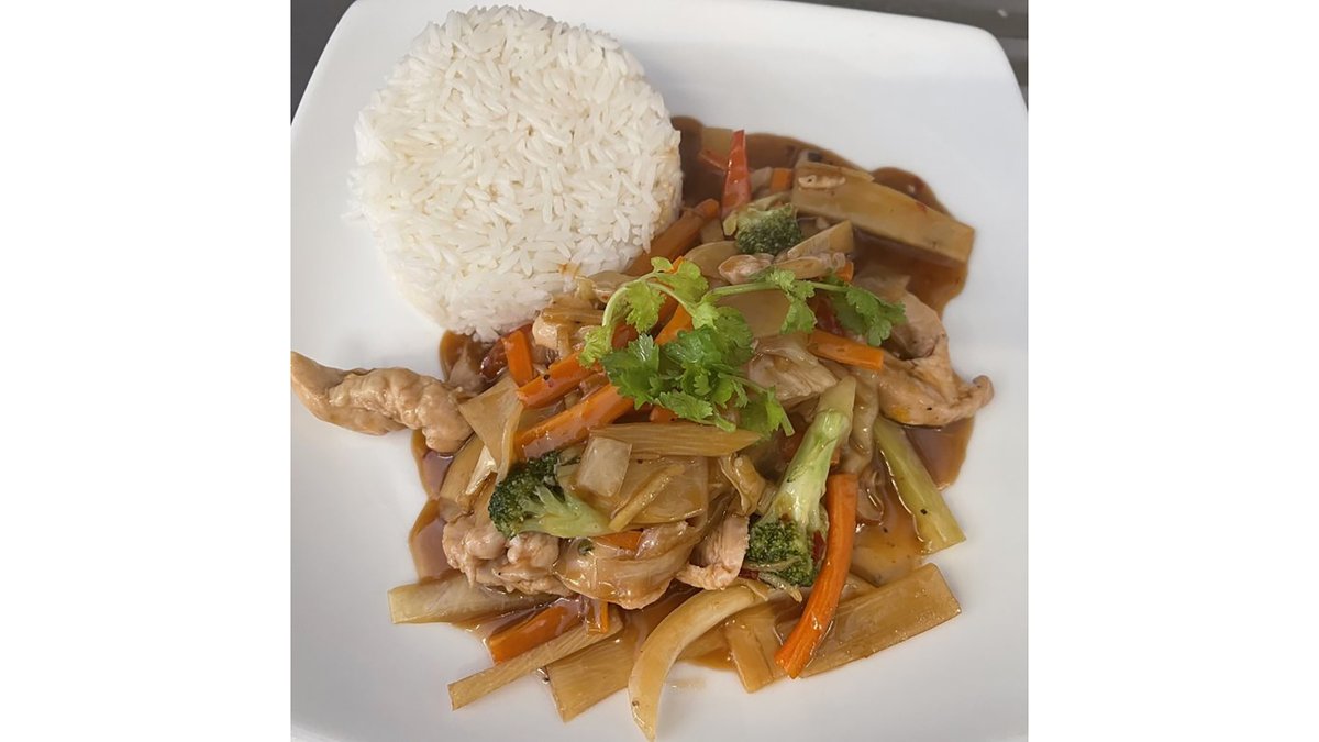Kylling og grønnsaker i hot bean saus.