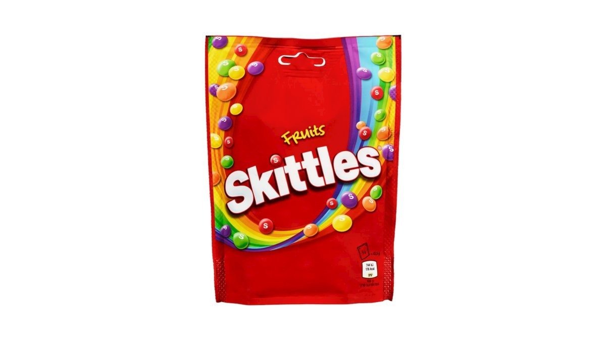 Skittles Fruits er seige og fruktige søtsaker dekket av et fargerikt og knasende skall. Her får du smakene jordbær, appelsin, sitron, lime og solbær. Skittles - smak på regnbuen! # Godteri