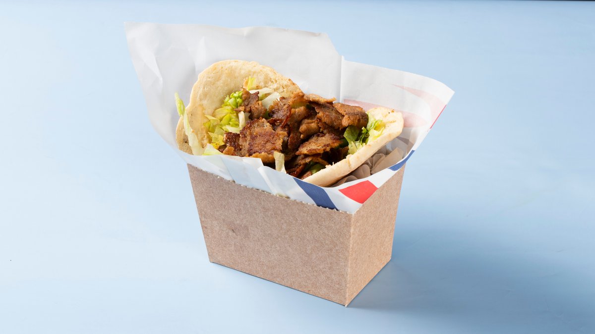 Alle kebabretter kan fås som rull eller tallerken. Tallerken inneholder pommes frites og pitabrød ved siden av.