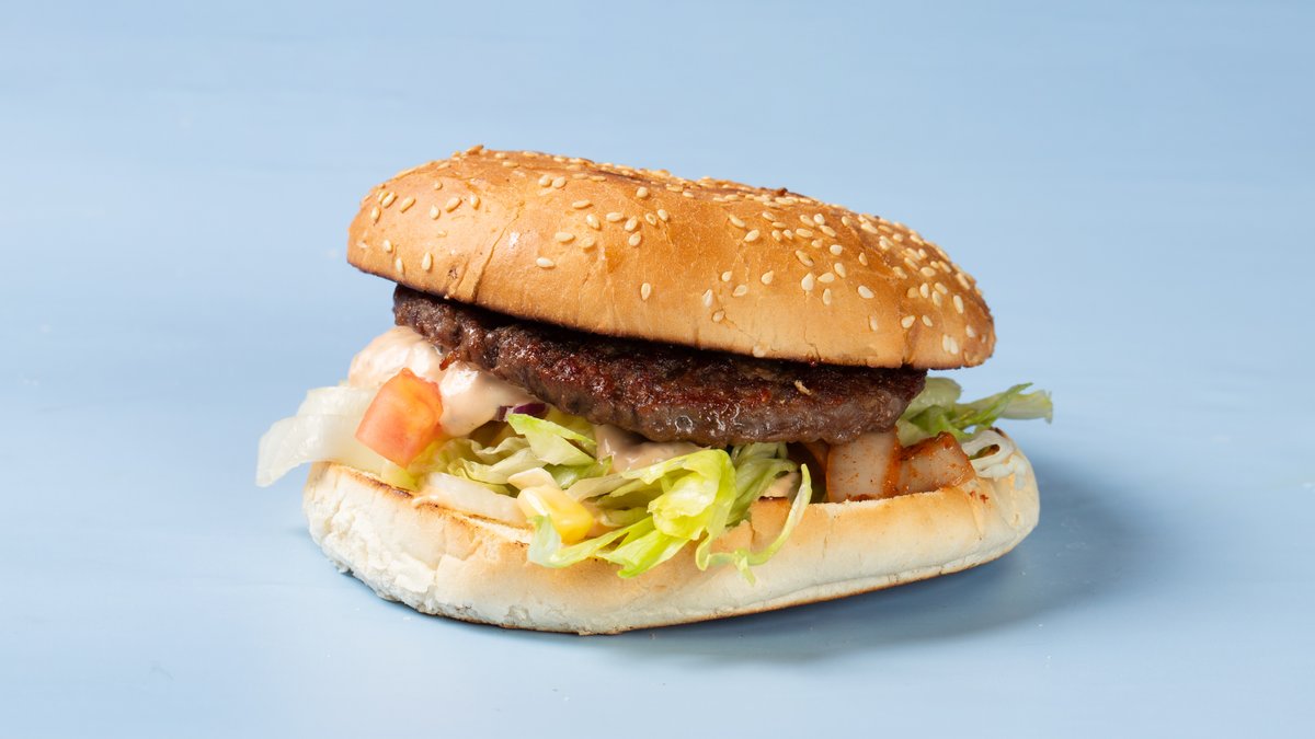 Serveres med ost og döner kjøtt lagt oppå burger kjøttet. Ønsker du tallerken som inkluderer pommes frites kan du velge det også.