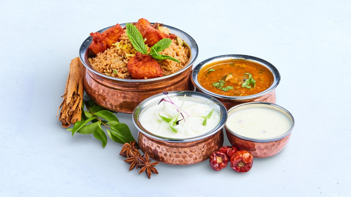 Ideal for gatherings and celebrations — generous biryani portions prepared fresh to order, served with complementary sides for a complete meal.