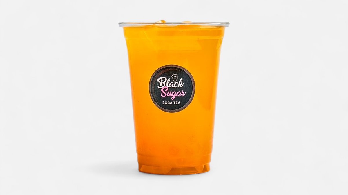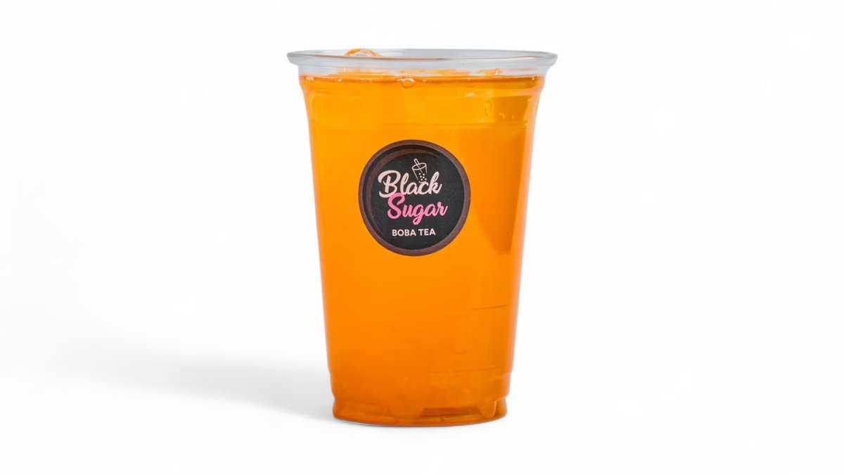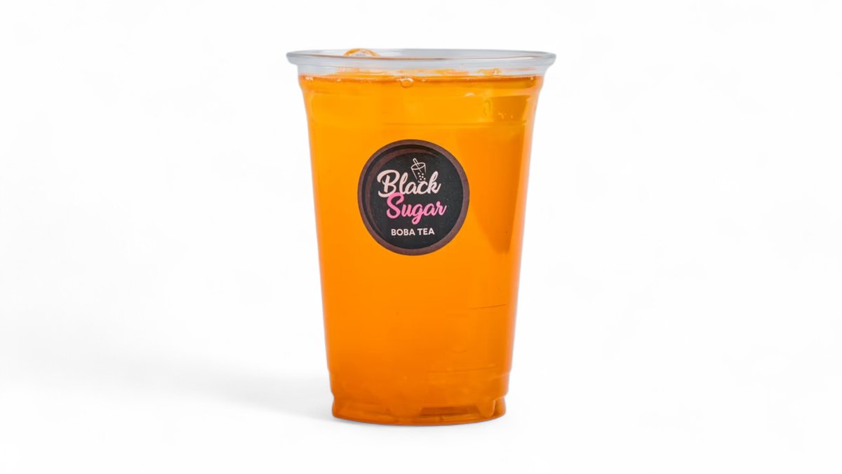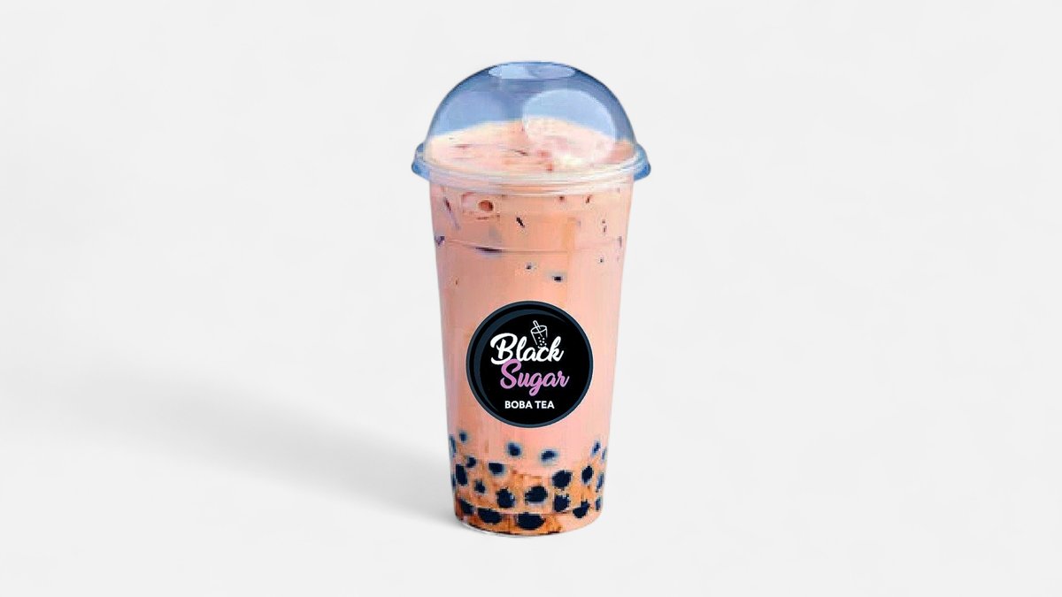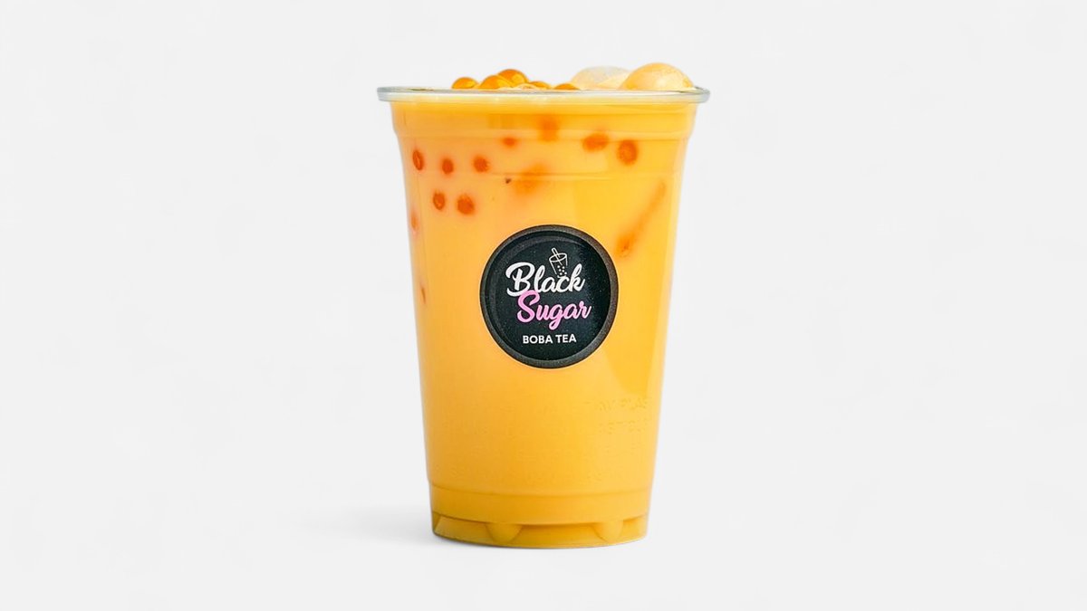 Melk te med fersken smak. Inkludert 1 gratis valg av topping.