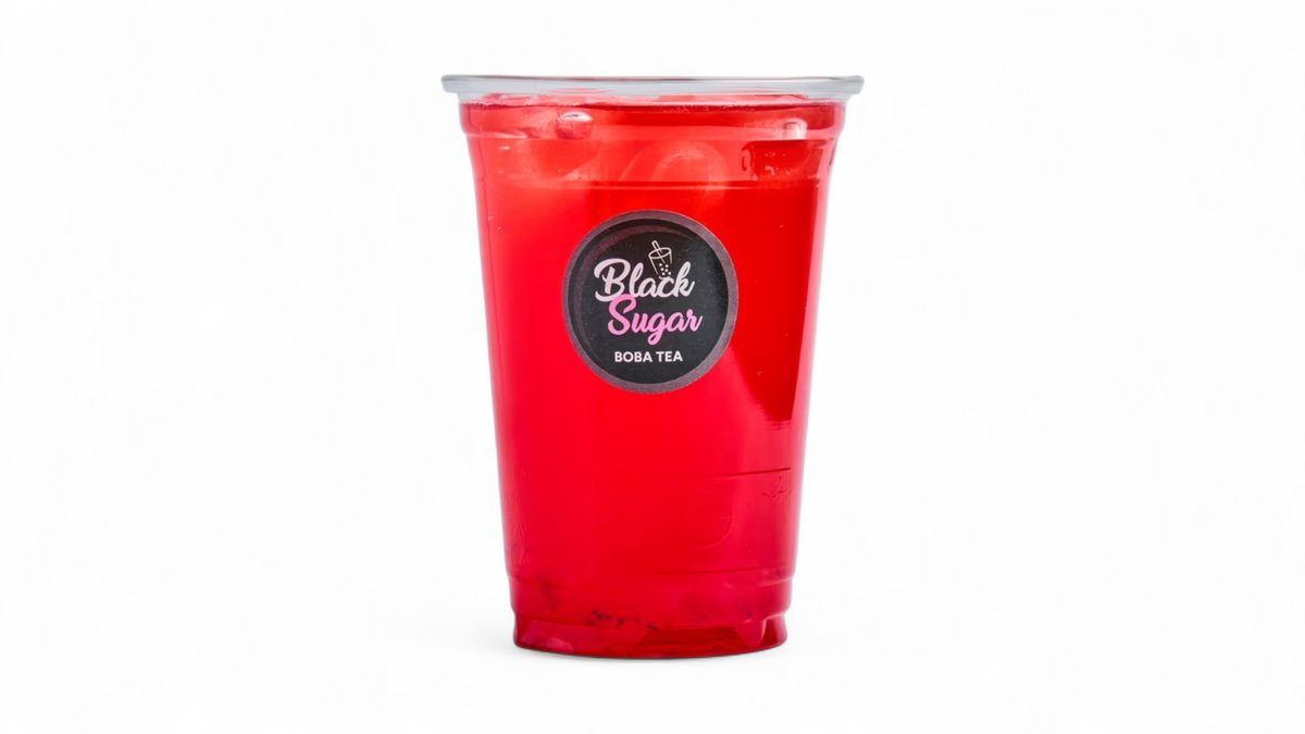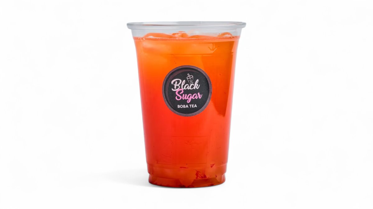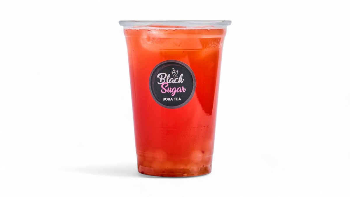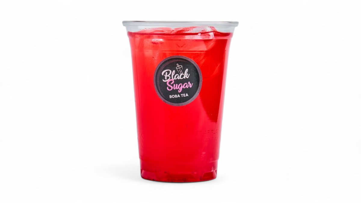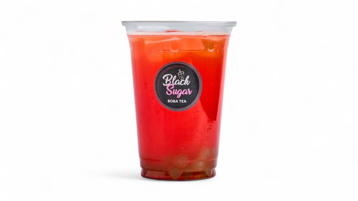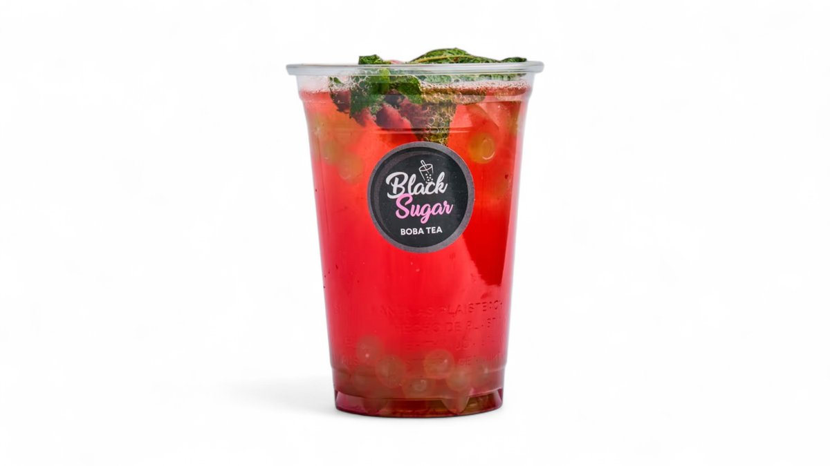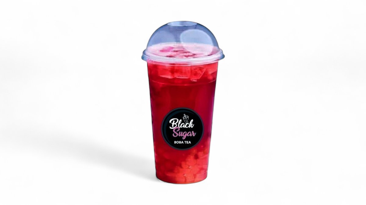 Svart te med vannmelon og jordbær. Inkludert 2 gratis valg av topping.