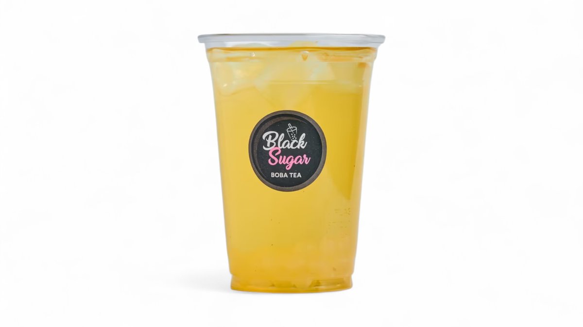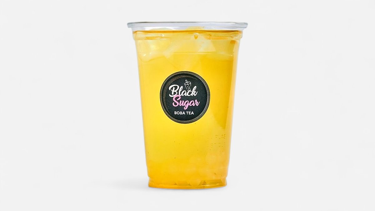 Grønn te med mango og pasjonsfrukt smak. Inkludert 2 gratis valg av topping.