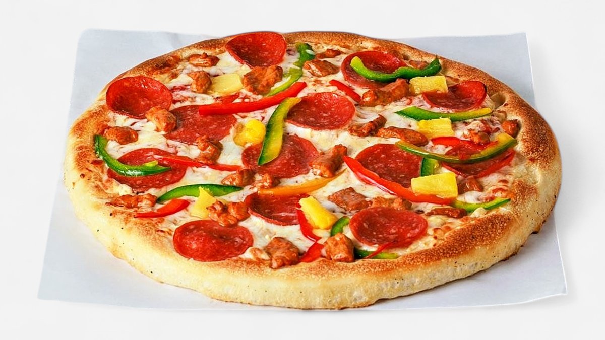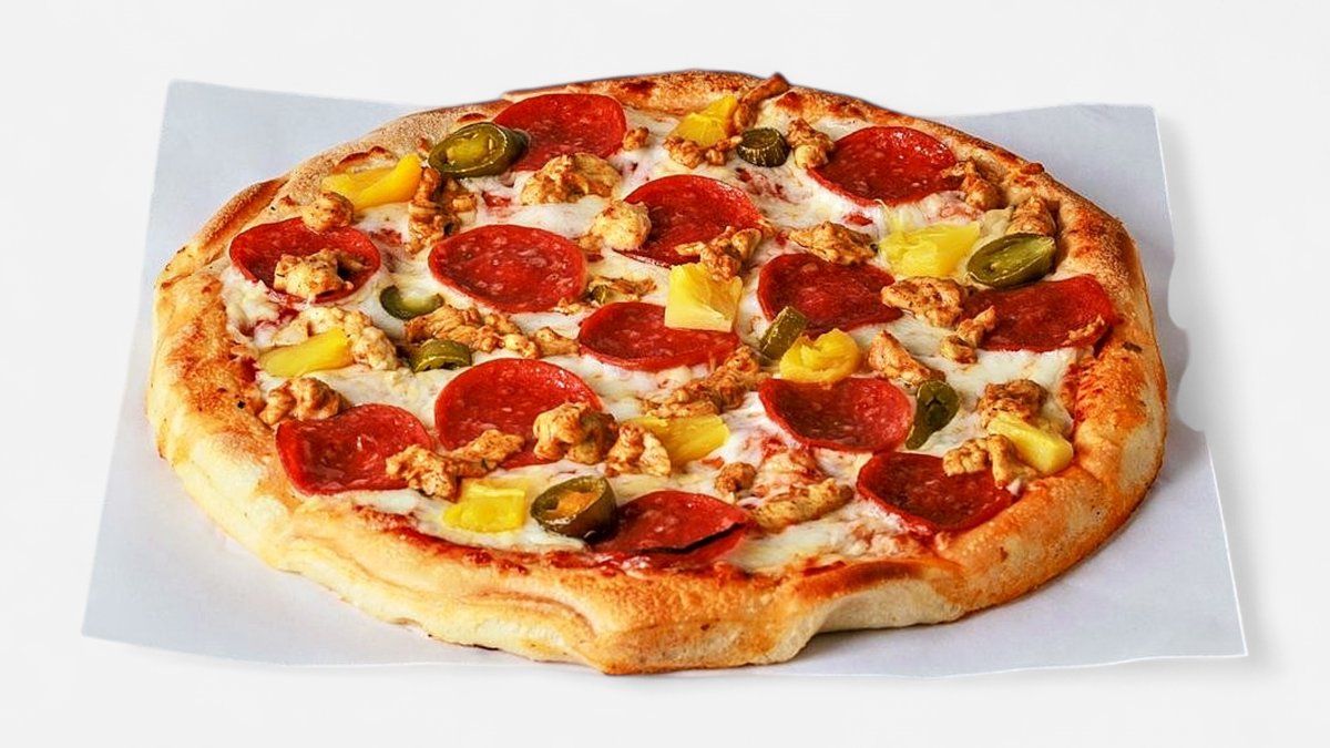 Pepperoni, biff, kylling, paprika, løk og jalapenos