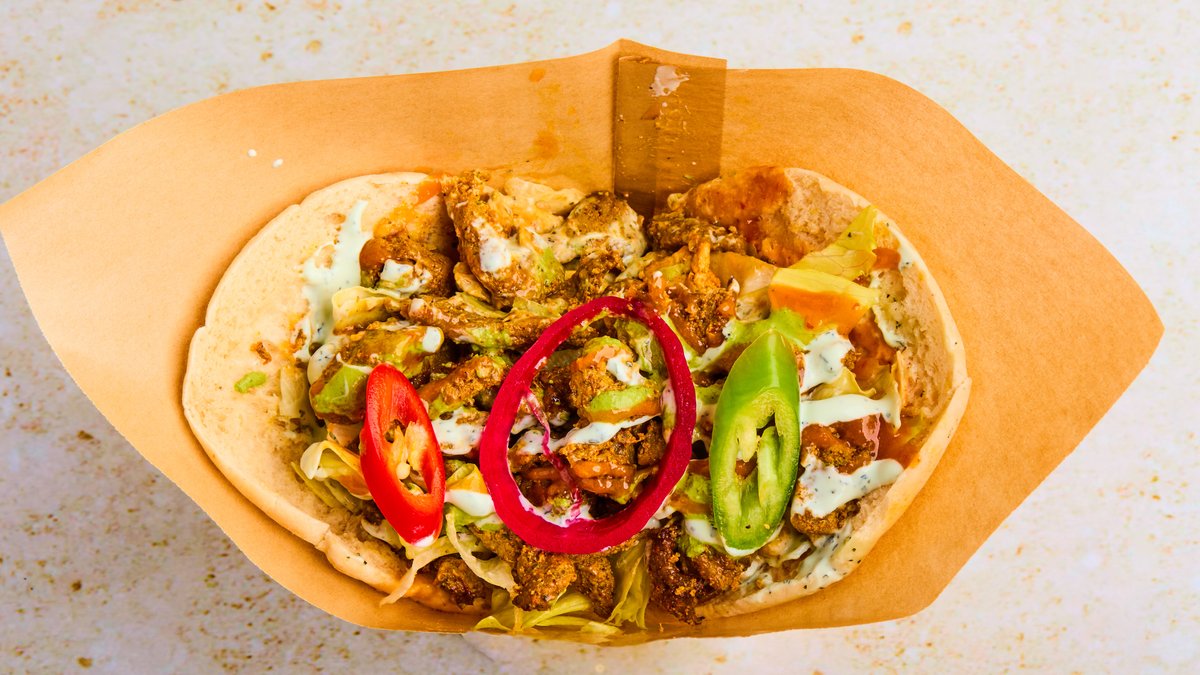 Indisk øst marinert i vår signatur tikka masala, serveres i pita med salat og husets dressing.