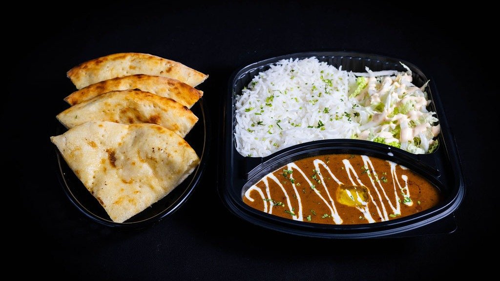 Kylling marinert i vår signatur tikka masala i fyldig saus, servert med Ris. Naan må bestilles i tillegg.