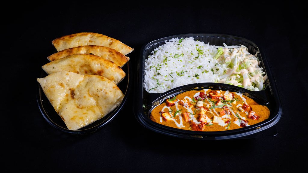 Indisk øst marinert i vår signatur tikka masala, serveret med ris, krydrede poteter, servert med fyldig kremmet saus.