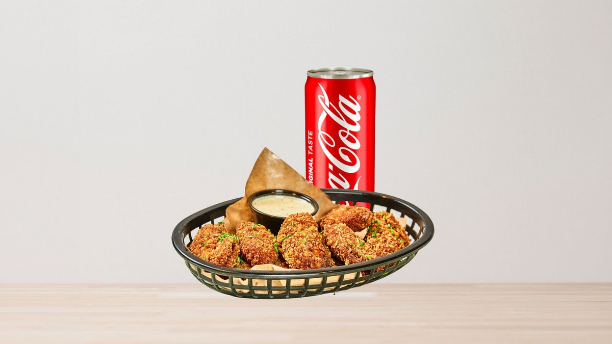6 friterstekte vinger med hjemmelaget saus + 1 soda