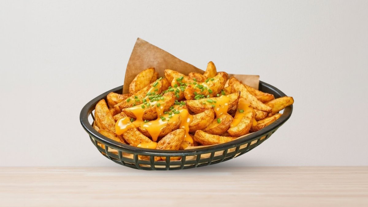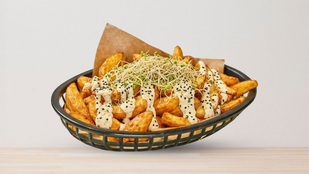 **Vi lager pommes frites for hver bestilling, men pga. leveringstid kan pommes frites bli soggy**