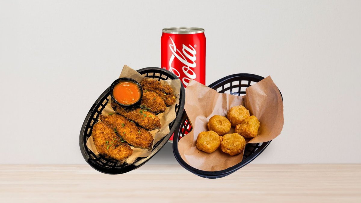 6 friterstekte vinger med hjemmelaget saus + 1 chili cheese + 1 soda
