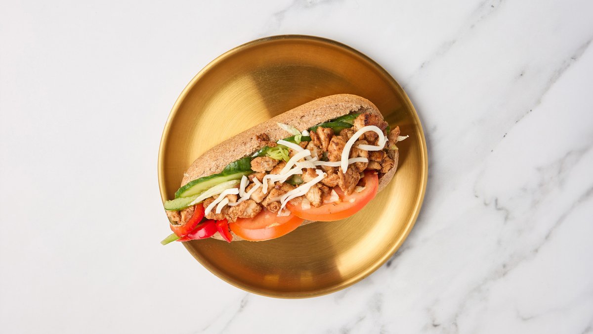 Grillet kylling, salat, tomat og Dijon-mayo i en sprø fransk baguette. Serveres med valgfri drikke.