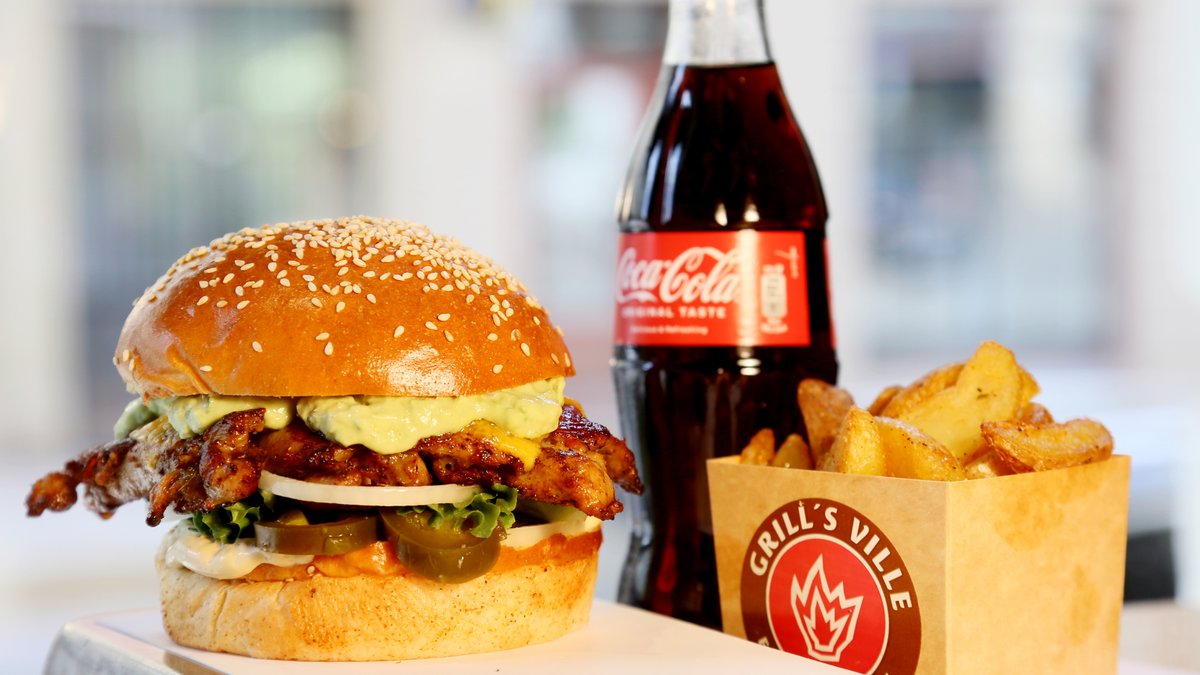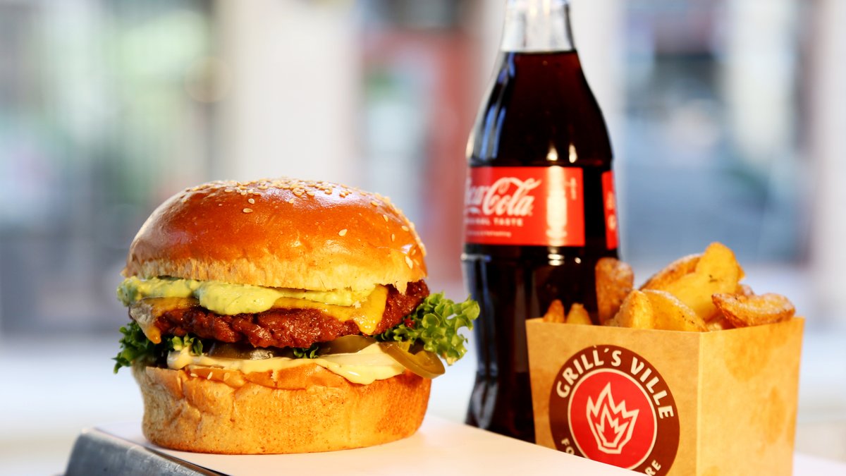 Beyond burger med Guacamole, Jalapeño,onion,cheese, salad, fried onion & mayonnaise dressing. Serveres med fries, og valgfri drikke.