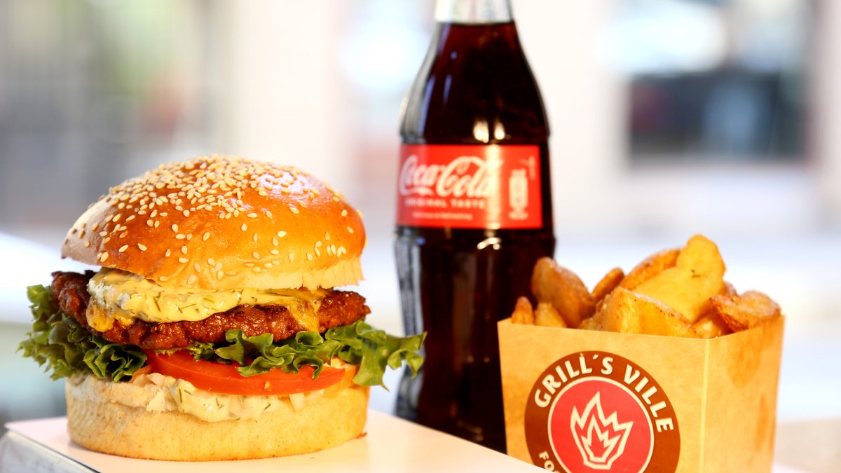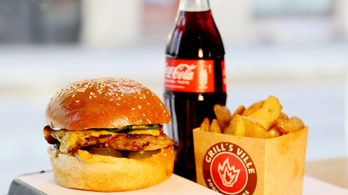 Pickles mash with onion & tomato, salad, fried onion,cheese & burger dressing. Serveres med fries, og valgfri drikke.