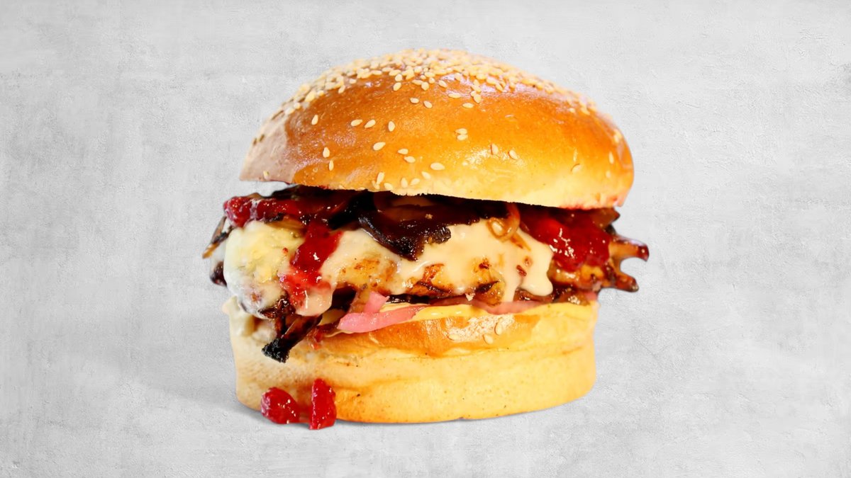 Gorgonzola Dolce cheese, mushroom, pickled onion, fried onion, berry jam &herb mayonnaise.