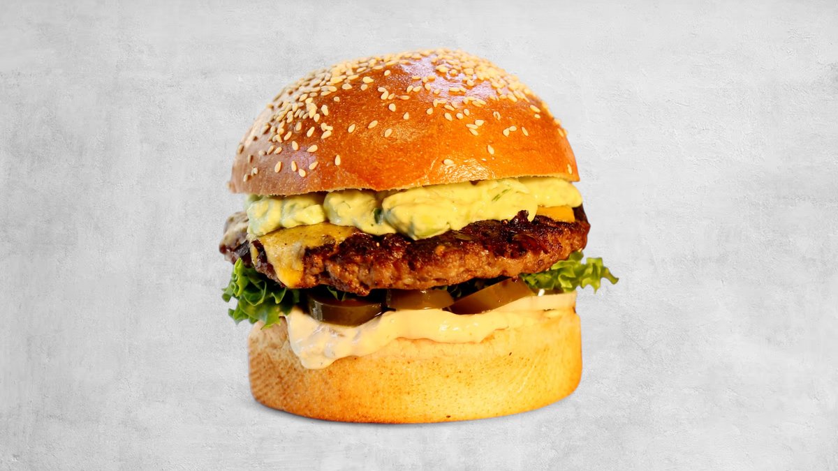 Beyond burger med Guacamole, Jalapeño,onion,cheese, salad, fried onion & mayonnaise dressing.