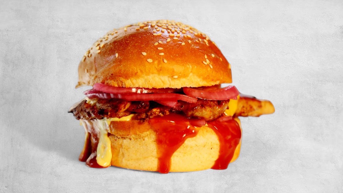 Beyond burger med pickled onion, cheese, fried onion, BBQ & mustard dressing. Serveres med fries, og valgfri drikke.