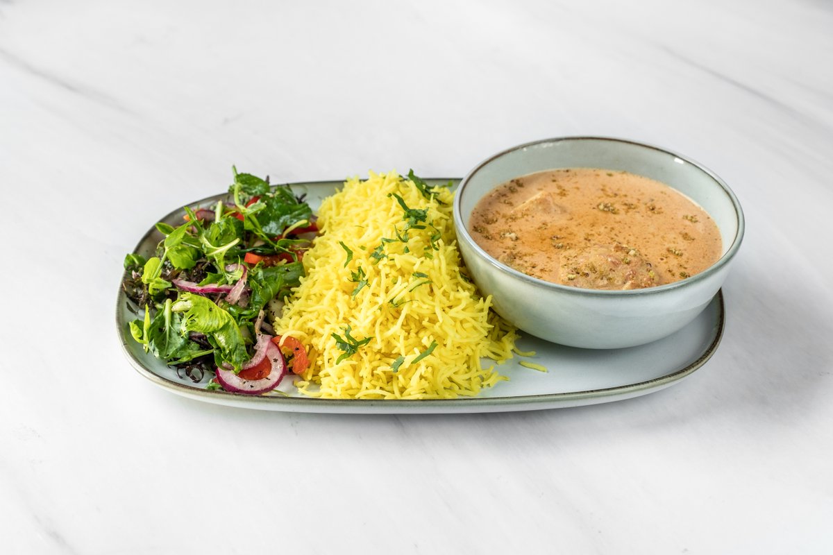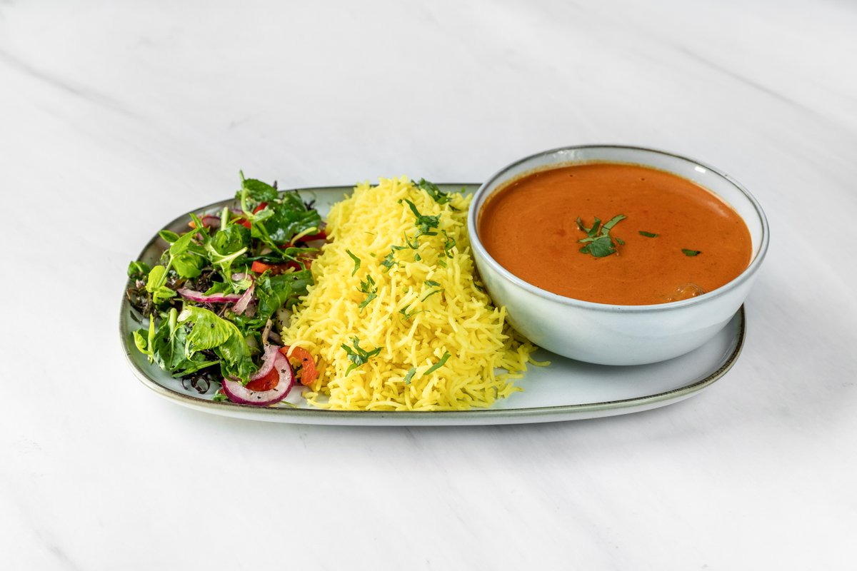 En vri på den klassiske «chicken curry». Kylling tilberedt i en eksotisk fløtesaus med kokos melk og nydelig balansert smak av mango. (M)