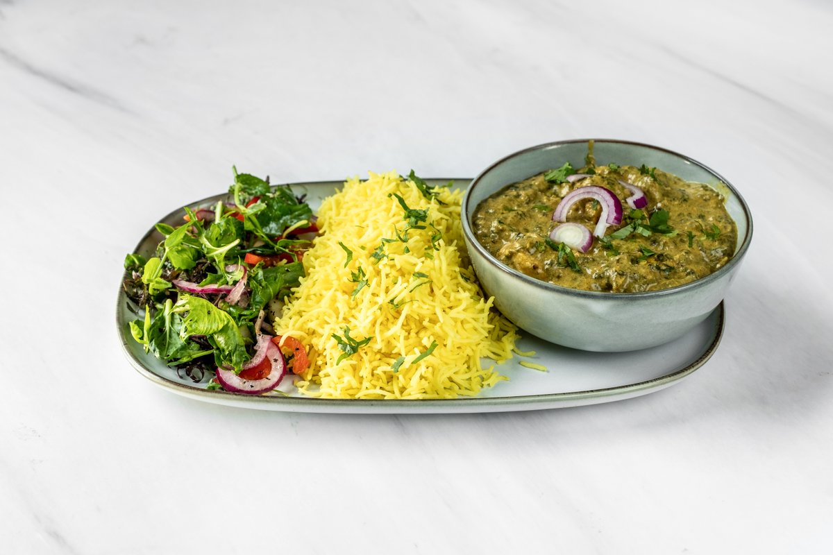 Kikerter kokt i en kremet spinatbasert saus. Tilsatt hvitløk, koriander og indisk krydder. . Kan også bestilles vegansk. (M)