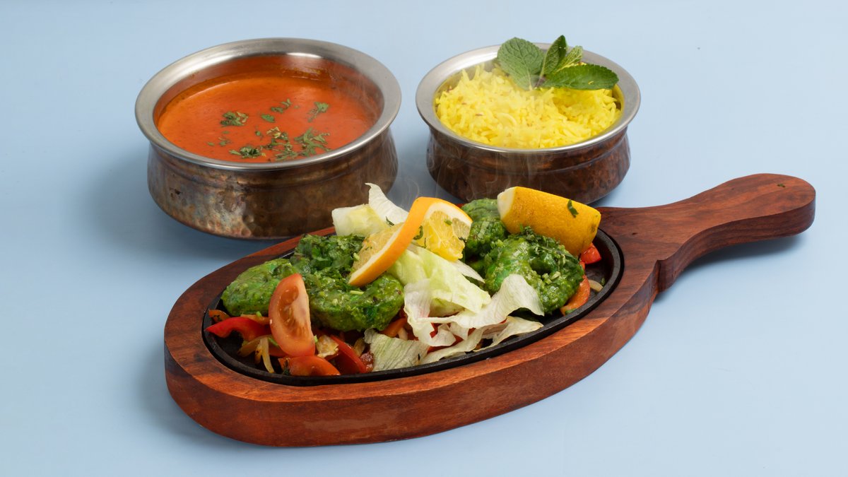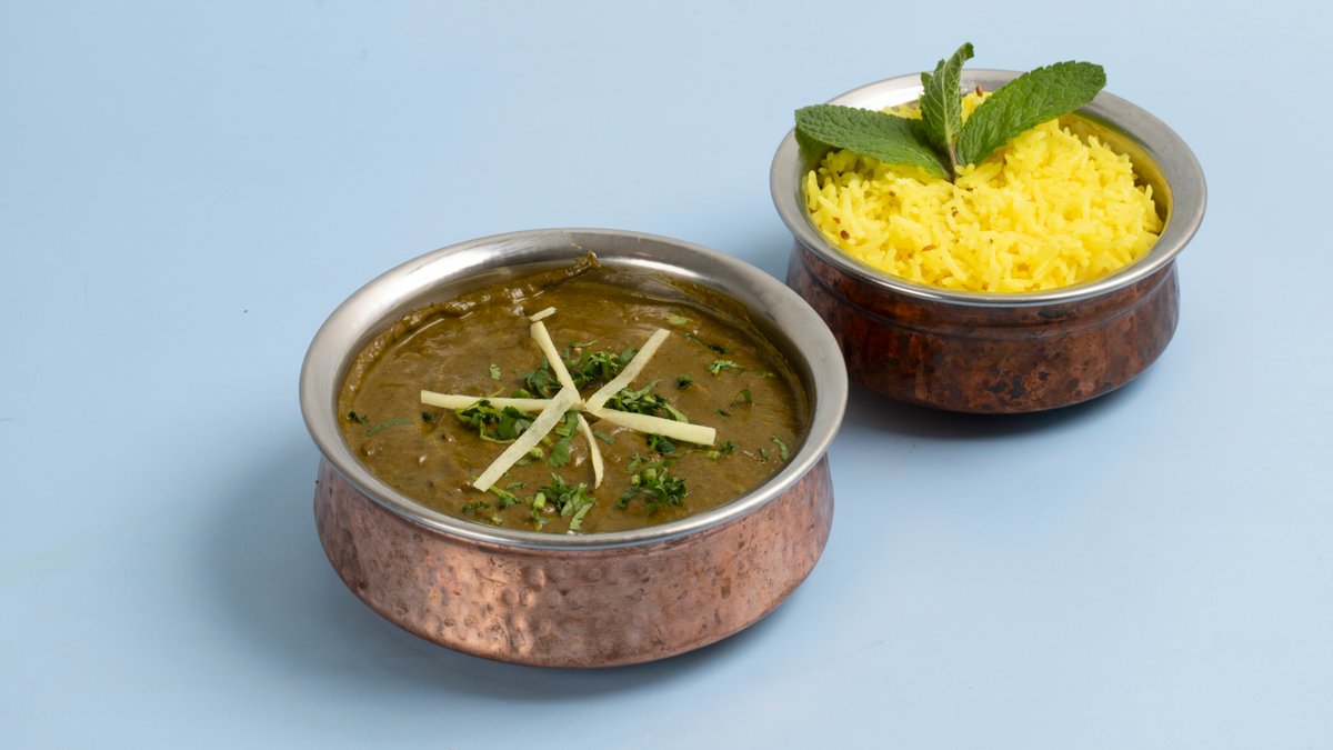 Lam kokt i spinat, ingefær, hvitløk, urter og krydder.