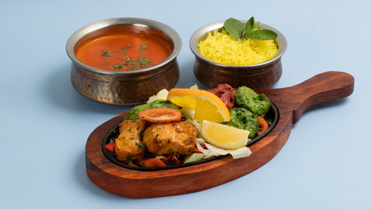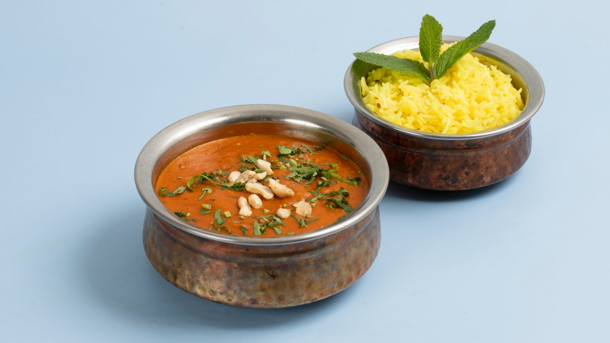 Grillede lammebiter tilberedt i fyldig masalasaus med nøtter og krydder.