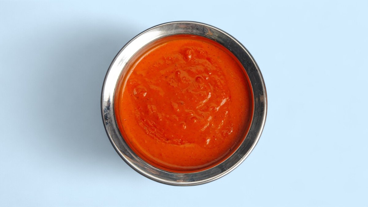 Reker marinert med chilli og krydder, serveres med tangy chutney.