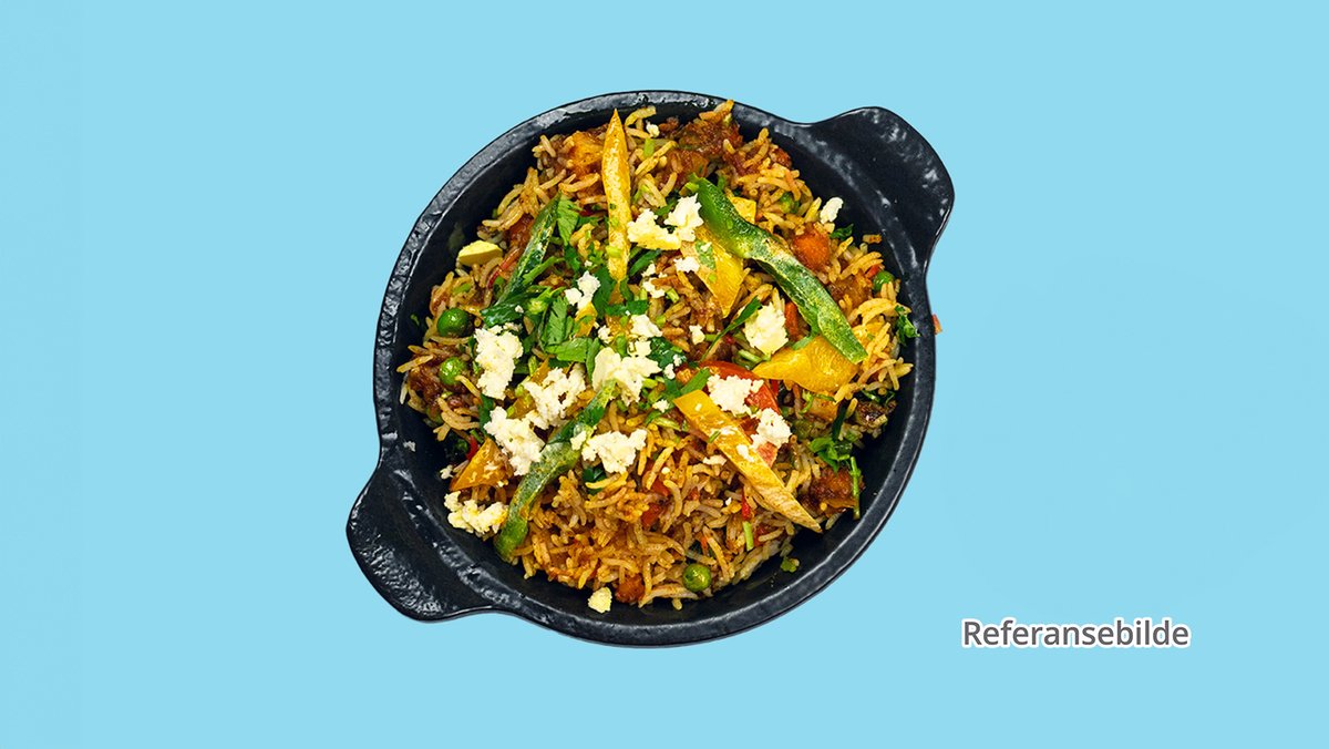 Ris kokt med beinfri kylling, cashewnøtter, rosiner og biryani krydder.