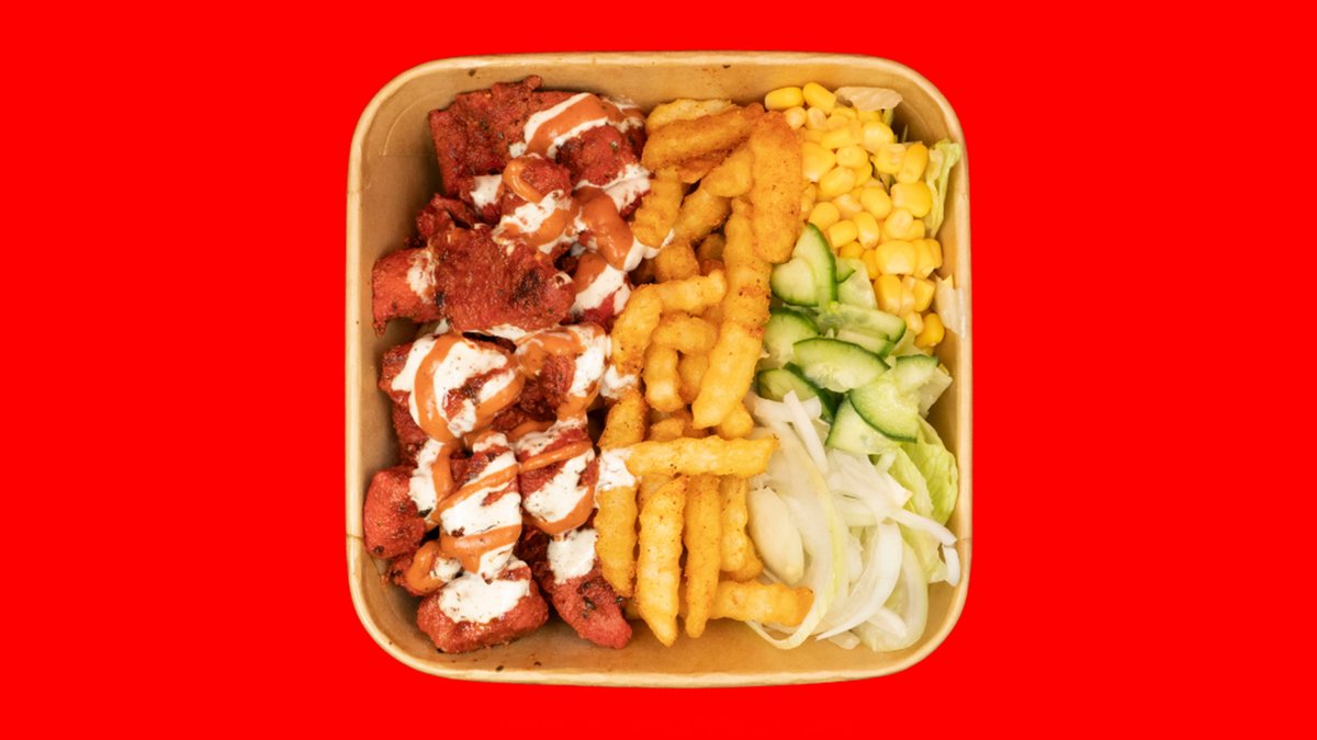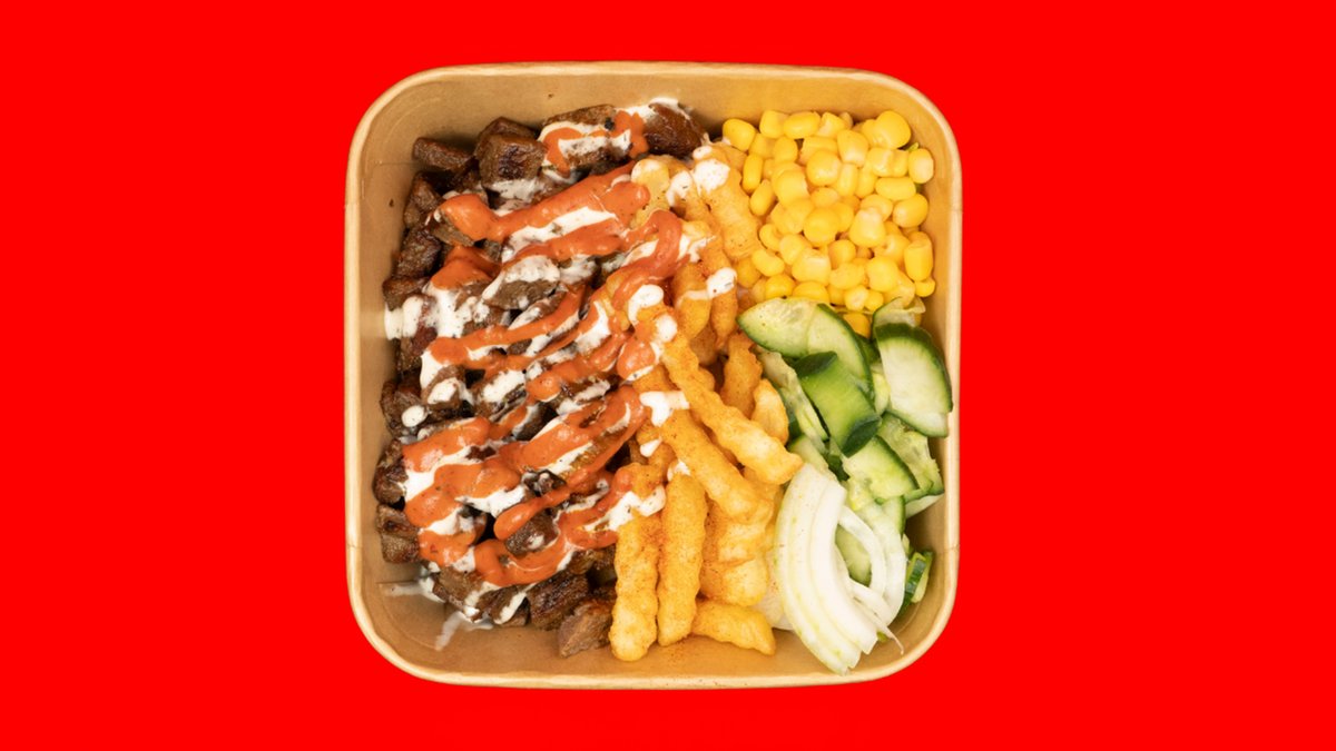 Kammis Boks – kebab på en ny måte! Sprø fries toppet med fire oster, saftig marinert kjøtt, friske grønnsaker og våre smakfulle husets sauser. En perfekt kombinasjon av sprøtt, saftig og smakfullt!