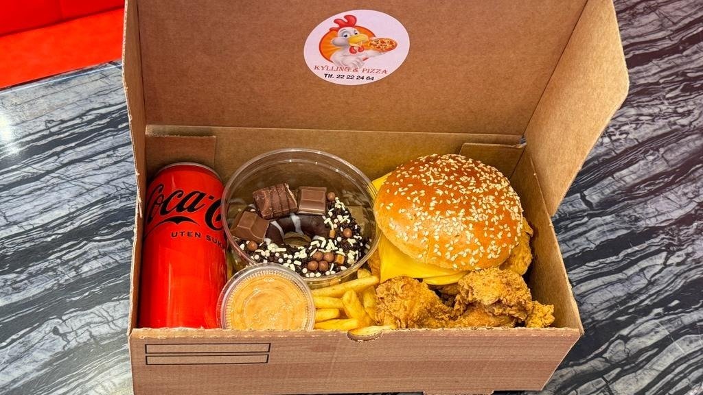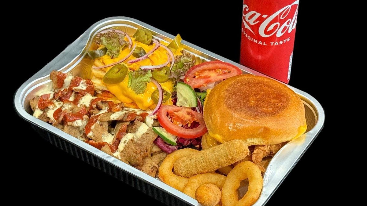 Served with 1 burger of your choice, 3 hot wings, fries, 1 sauce, 1 donut and 1 drink 0,33l.