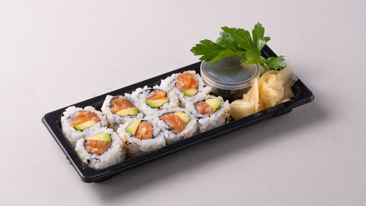 Rull med laks og avokado.