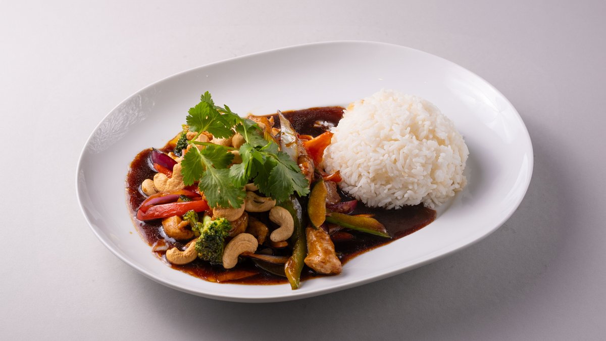 Kinesisk kyllingrett blandet med ingefær, chili og cashewnøtter.