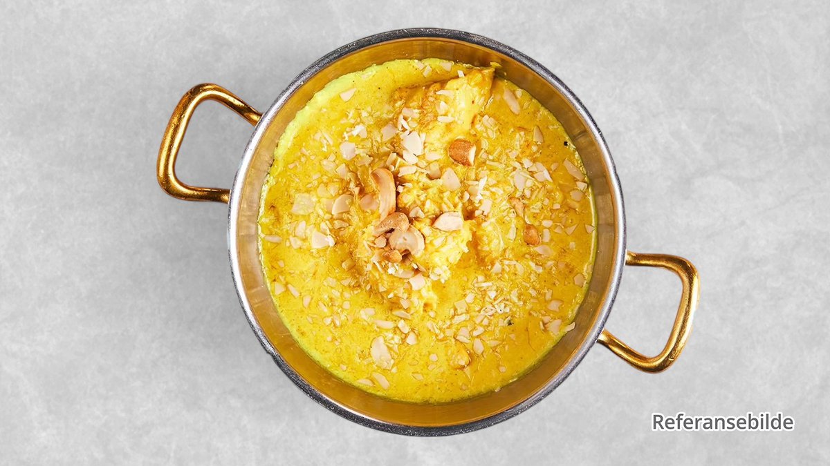 Kongereke putret i fyldig aromatisk masalasaus tilberedt med stekt løk, tomater, ingefær, hvitløk og krydder. Beriket med cashewnøtterpasta, krem. Serveres varm pyntet med grønn koriander.